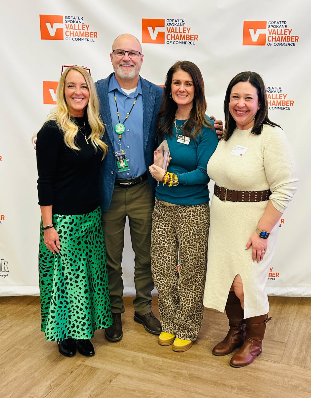 On March 4, the Greater Spokane Valley Chamber of Commerce held its annual Business and Education recognition dinner. Along with the large and small business awards, an educator from each of the four Valley districts (CV, EV, WV, and Freeman) is selected to represent their respective district as the Educator of the Year. We are extremely proud and pleased to share that Destiny Hornstein (Otis Orchards Elementary) was selected as East Valley’s 2026 Educator of the Year. Earlier this school year, Destiny was also named as Northeast Washington Educational Service District 101’s Teacher of the Year for 2025/26. As the regional selection, Destiny represented the fifty-nine school districts of ESD 101.