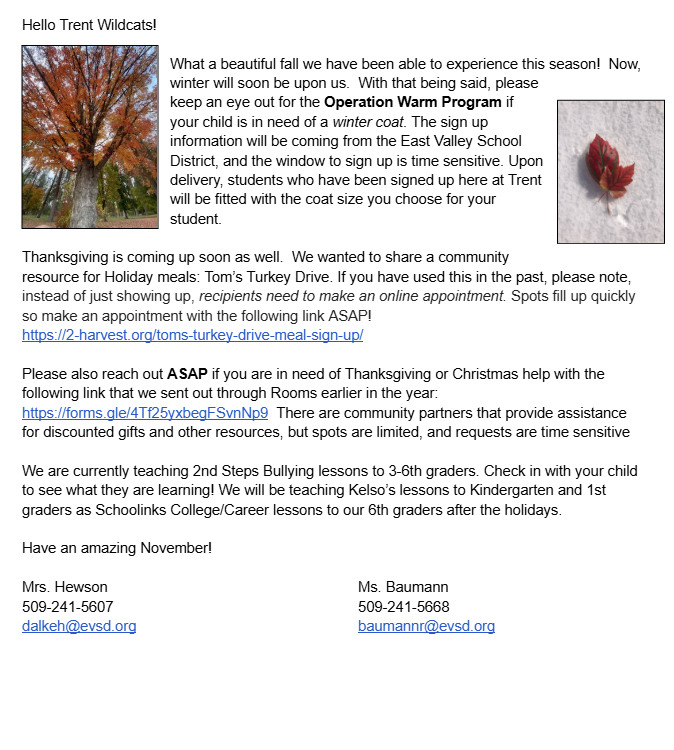 Trent Elementary Office: 509-924-2622 Trent Elementary Attendance Line: 509-241-5602