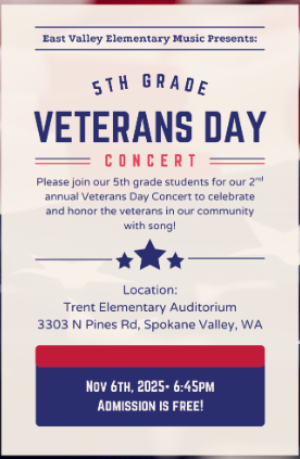 District 5th Grade Veterans Day Concert @Trent Elem | 5:15-7:45 pm