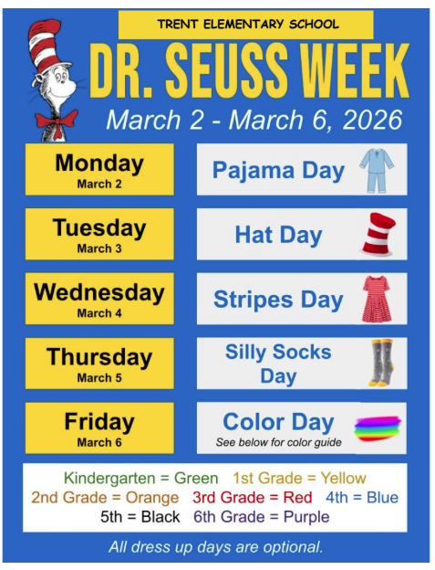Dr Seuss Week | Silly Socks Day Girl's Wrestling @EVHS | 3:30-4:30 2nd Grade Music Concert | 6:00-6:30 |