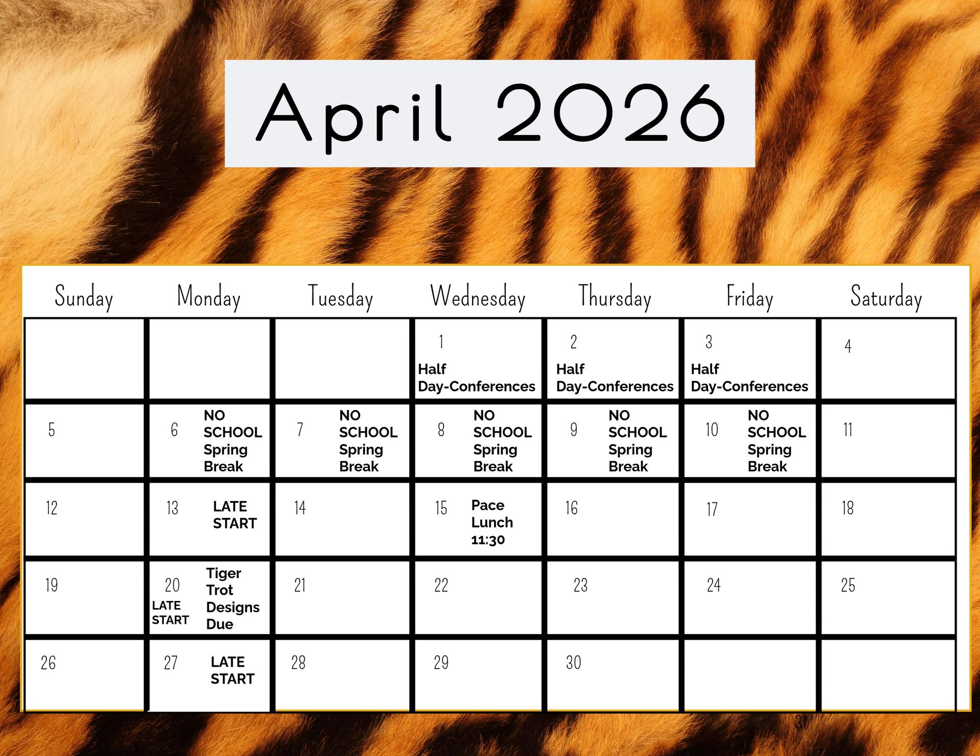 As we approach Spring Break, we wish all of our families a restful and enjoyable time. Thank you for your continued partnership.
